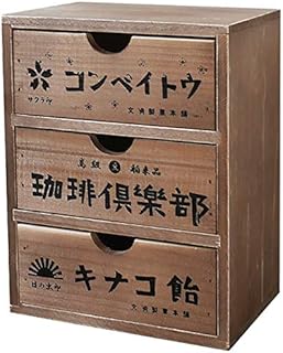 BREA-1590 木製 レトロ柄 3段引き出し ミニチェスト 小物入れ 日本製