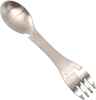 HOLEBAYSHOP-JP ステンレス鋼の多機能フォークとスプーン栓抜き缶切りアウトドアキャンプポータブル食器ナイフとフォーク一体型 かんたん