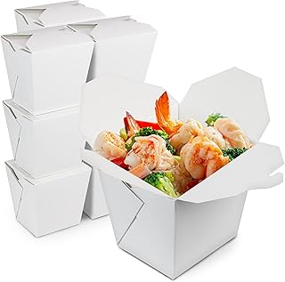 Fit Meal Prep [50パック] 26オンス 4 x 3 ワイヤーハンドル 長方形ペーパーテイクアウトフードコンテナ プレーンホワイト ハーフクォート 中国アジアンツーゴーボックス