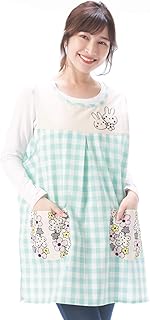 NISHIKI[ニシキ] エプロン おてんばママ 保育士 保育園 幼稚園 かわいい アップリケ 刺繍 サイドボタン ポケット付き レディース チュニック apron (グリーン/ML/nw7005)
