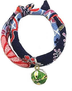 【首輪処】猫用首輪 猫鈴 チャーム 冠菊 緑 アクセサリー チョーカー やわらかい生地で首や被毛に負担がかからない(サイズ調整可)浅草 京都 ちりめん 和風モダン おしゃれ かわいい 冠菊 グリーン