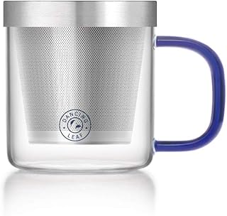Dancing Leaf Transparent Tea Mug with Heat Resistant Stainless Steel Infuser & Lid, Perfect Tea Cup for Office and Home Uses Suitable for Teabags, Loose Leaf & Fine Leaf Tea (300ml)