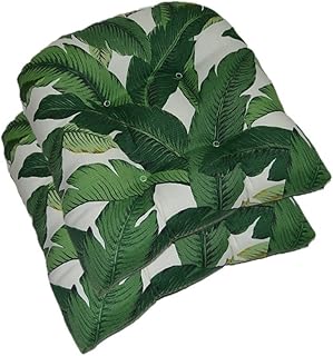 2のセット – ユニバーサルTufted U字クッションfor Wicker Chair Seat – Tommy BahamaトミーバハマSwaying Palmsアロエ~ Green Tropical Palm Leaf