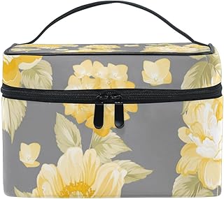 Natax 化粧ポーチ 大容量 かわいい おしゃれ 機能的 バニティポーチ 収納ケース ポーチ メイクポーチ ボックス 小物入れ 仕切り 旅行 出張 持ち運び便利 コンパクトローズ イエロー 花柄