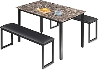 HOMOOI ダイニングテーブルセット 大理石柄 クッション付き収納式ベンチ 幅110cm (スチールテーブル×1ベンチ×2)4人掛けテーブル