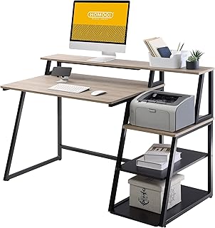 パソコンデスク 3段プリンター台付き HOMOOI 幅140cm デスク 特大サイズモニター台付き PCデスク ラック付きデスク PC机 ヴィンテージオーク