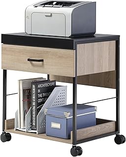 HOMOOI プリンター台 引き出し付き プリンターラック キャスター付き プリンターワゴン 棚付き ミックスカラー 幅53x奥行40x高さ63cm ヴィンテージオーク H03E2050P