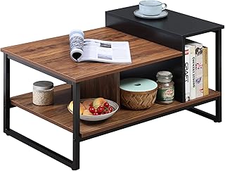 HOMOOI ローテーブル 階層設計 木制センターテーブル コーヒーテーブル コンパクト収納 リビング用テーブル 幅80×奥行50cm サペリ H12E3085Q