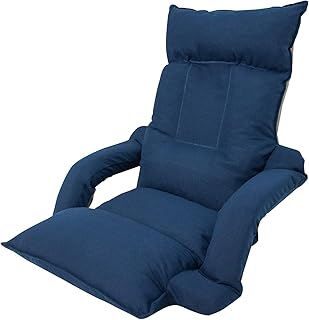 WAVV 座椅子 ひじ掛け付き ハイバック 低反発 背もたれ・頭部 14段階調整 肘掛けリクライニングに連動 1人掛け フロアチェア 座椅子 (ネイビー)