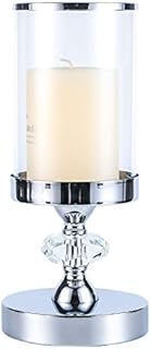 YL031M シルバーキャンドルホルダー ガラスカバー付き メタルクリスタルボール付きキャンドルスタンド コーヒーダイニング テーブル、結婚式、クリスマス、ハロウィン、ホームデコレーションに