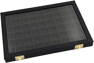 ジュエリー収納ボックス アクセサリーケース 54区画 ガラスカバー付き 展示用 宝石箱 小物入れ 全6色 - ブラック