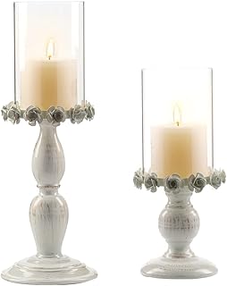LANLONG 2個セット ヴィンテージハリケーンキャンドルスティック ガラスカバー付き アンティークメタルピラーキャンドルホルダー ローズ彫刻 ロマンチックなディスプレイ ホームウェディングキャンドルライト ディナーデコレーション用