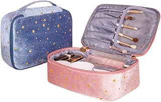Begasso 化粧ポーチ メイクポーチ コスメポーチ 持ち運び トラベルバック ブラシ入れ付き 化粧道具 小物入れ 収納ポーチ ベルベット素材 旅行 出勤 出張 (pink, style-B)
