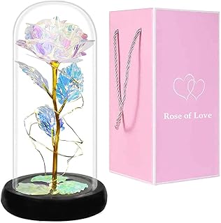 カラフルな造花ガラスローズギフト LEDライトストリング ガラスカバー付き 母の日 レディース クリスマス 結婚式 バレンタイン 記念日 誕生日へのユニークなギフト