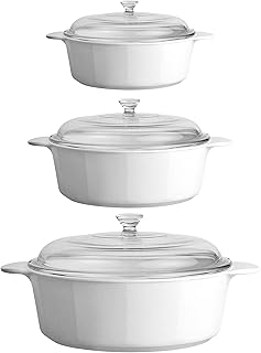 CorningWare Pyroceram クラシックラウンドキャセロール 調理ポット ハンドル&ガラスカバー付き 3.5クォート 2.4クォート 1.3クォート ホワイト