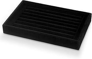 VALYRIA ベルベット素材 7スロット 指輪 イヤリング トレー ショーケース ディスプレイ ジュエリー 整理箱 22.5cm x 14cm x 3cm ブラック