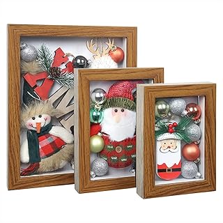 ArtbyHannah 3パック 8 x 10インチ ウォールナットシャドウボックス ピクチャーフレームセット ガラスカバー付き ディスプレイケース マット付き 自立式ピクチャーショーケース