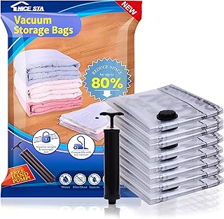 ILEBYGO 真空ストレージバッグ 8パック Mサイズ 28インチ x 20インチ スペース節約バッグ 旅行用ハンドポンプ付き 再利用可能な衣類ストレージバッグ 衣類 マットレス ブランケット 掛け布団 掛け布団 キルト 旅行に