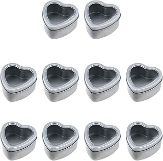 Mironey 2.3インチ x 2.25インチ ハート型メタル缶 シルバー 空のハートメタル缶 クリアウィンドウ蓋付き キャンドル作り キャンディ ギフト収納用 10個パック