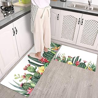 Colorful Star キッチンマット 2枚 床用 クッション 疲労防止 キッチンラグ 防水 滑り止め フロアマット セット ポリ塩化ビニル 快適なフォームラグ 洗濯用 幅17インチ x 長さ29インチ + 幅17インチ x 長さ47インチ - サボテンファミリー