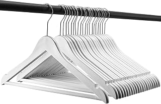 ZOBER モダンウッドルック プラスチックコートハンガー 10個パック 木製イミテーションプラスチックスーツハンガー 滑り止めパンツバー付き 破片なし ノッチショルダー (10個パック) ホワイト
