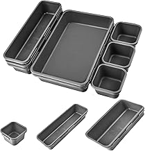 PEPAXON 引き出し仕切り 引出し用 デスクトップ用収納バスケット 引き出しの整理などに便利 収納ケース 化粧収納ボックス 8個入り (濃い灰色)