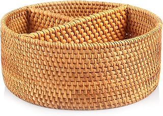 DODOPEN ハンドメイドラタン収納バスケット 手編みバスケット 整理用バスケット (ラウンド-A4)