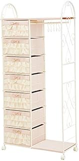 ハンガーラック 衣類ラック 収納ボックス 幅75cm 衣類収納 ワードローブ クローゼット スチール キャスター付き S字フックかわいい 北欧 アンティーク (引き出し7杯ハンガーラック)