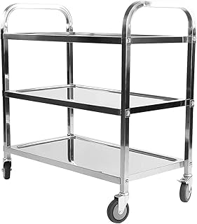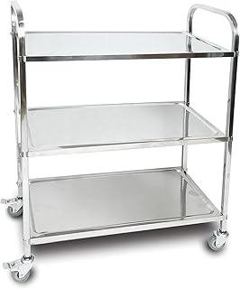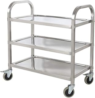 uyoyous ステンレス ワゴン サービス カート 3段 組立式 業務用 収納 ワゴン キッチンカート ワゴン キャスター付き 360°回転 - 配膳車 耐荷重約150kg 750x400x835MM (S-750x400x835MM)